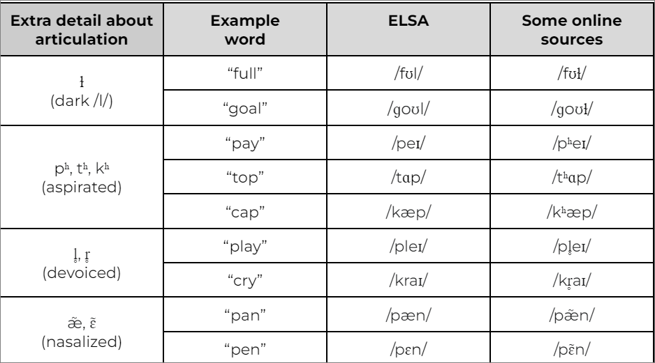 Q: ELSA’s IPA transcriptions are not the same as the ones I find in my favorite online dictionary. Is ELSA serious about the IPA?