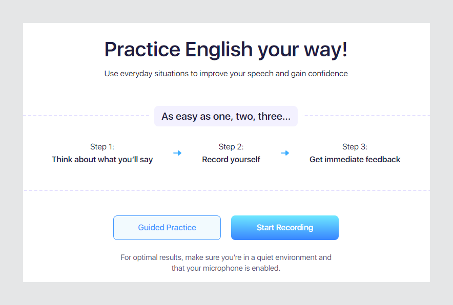 Practice your English speaking with your topics of choice or follow Guided Practice with given questions.